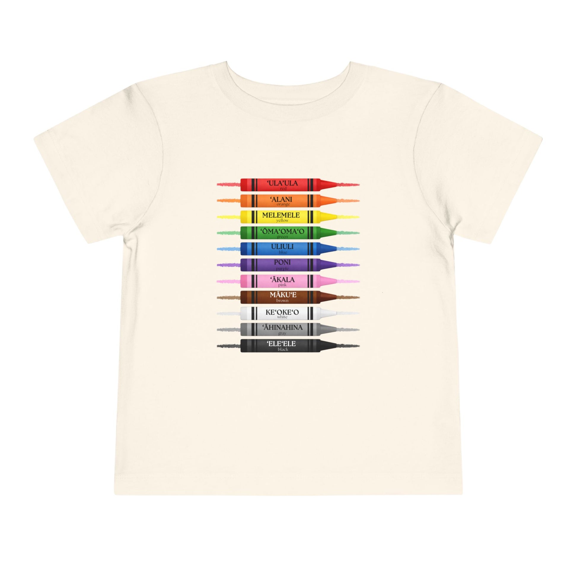 Say aloha to our Keiki Hawaiian Colors Tee, a bright and cheerful way to celebrate Hawai‘i’s language and the colorful world your Keiki sees every day. Inspired by classic crayons and childhood creativity, this tee features Hawaiian color names stacked in a rainbow of shades, turning ʻōlelo Hawai‘i into something fun, wearable, and easy to love.